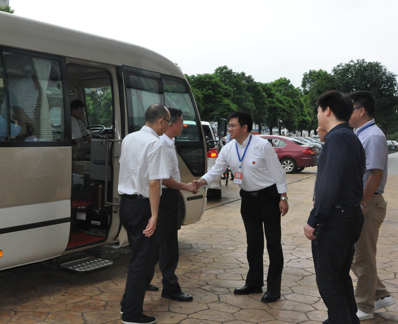市委副書記徐宏源(左二)一行領(lǐng)導(dǎo)蒞臨我公司,劉雅浪董事長熱情接待