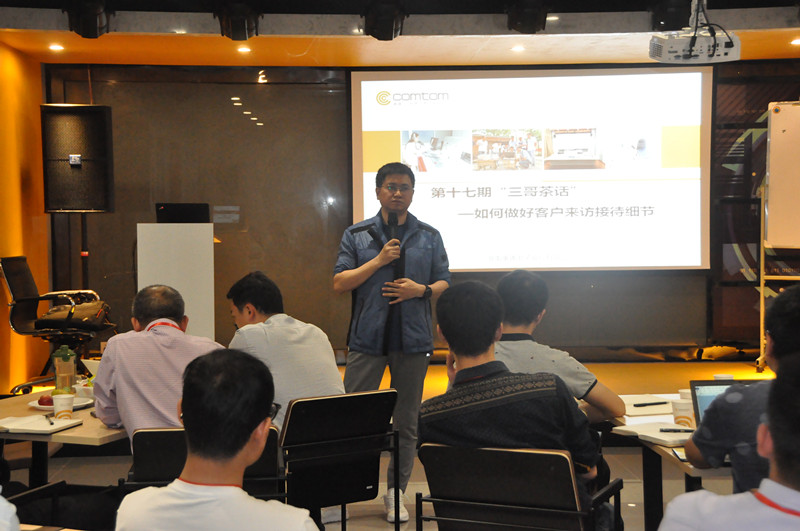 此次“三哥茶話”是自2016年開展以來的第十七期活動,由營銷總監(jiān)于占水主持。雖然是下班時間,但活動現(xiàn)場依舊爆滿。來自市場交付線等部門的50多位同事歡聚一堂,針對“我們出差應(yīng)該做哪些準(zhǔn)備?客戶來公司應(yīng)該如何做接待?我們現(xiàn)有的接待中做的好與不好的地方”三個主題進(jìn)行熱烈討論和交流,智慧廣播產(chǎn)品部李智勇、公共廣播渠道發(fā)展部陳鴻、技術(shù)中心朱曉麗、客戶服務(wù)部楊昭進(jìn)、湖南特區(qū)曹志華等多位同事積極發(fā)言,各抒己見。
