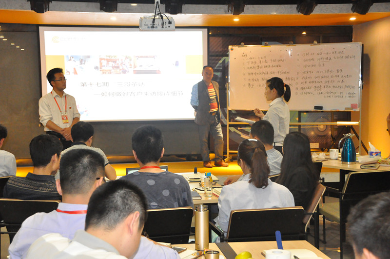 “ 接待工作要“按客所需,超出預(yù)期;付出熱情,收獲信任。最重要是解決問題,讓客戶圓滿達(dá)成來訪的目的?!毕M麪I銷部加強接待工作細(xì)節(jié)流程的標(biāo)準(zhǔn)化,加強流程的宣貫培訓(xùn),加強接待流程的運行管理。同時,對每次客戶來訪,總結(jié)點評接待工作中的優(yōu)缺點,加強通報宣傳,不斷改善,形成全體同事“對客戶要比對自己好”將心換心的客戶意識。 ” “接待就像戀愛,接待也是銷售成功的最重要一環(huán),接待各項指標(biāo)達(dá)到了,負(fù)責(zé)銷售的人員也就水到渠成了,接待就像戀愛的第一個環(huán)節(jié)相知,然后相識,接著相戀,最后走進(jìn)婚姻禮堂終成正果,這樣我們就成功了,當(dāng)然我們不僅僅是要終成正果,我們還要更好的呵護(hù)他,讓她穩(wěn)健的成長,甚至生個一胎二胎更多的兒子。這樣我們就遍地開花了” 。最后三哥以一個最生動的比喻來闡述接待有條有理、不卑不亢的重要性。給茶話會推向了高潮,也完美的讓本次茶話會圓滿收官。