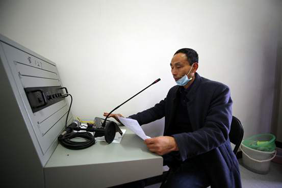 龍山縣茨巖塘鎮(zhèn)包谷村支部書記張宏林正在通過“村村響”播報(bào)防控政策和知識(shí)