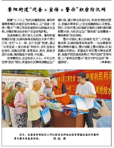 隨著“七下八上”防汛關(guān)鍵期到來,魯陽街道聚焦轄區(qū)水域安全治理難點,以“巡查+宣傳+警示"三維工作法織密防汛與防溺水安全網(wǎng),為轄區(qū)群眾生命財產(chǎn)安全保駕護航。