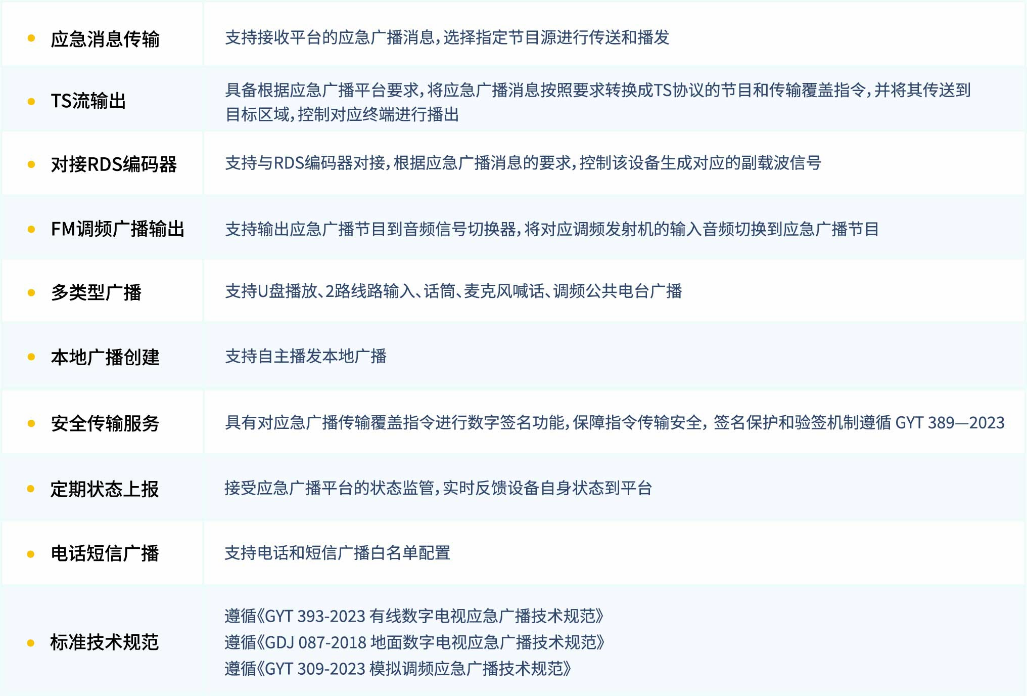 地面數(shù)字電視/有線數(shù)字電視/調(diào)頻應(yīng)急廣播適配器是應(yīng)急廣播解決方案中的重要產(chǎn)品,主要部署在發(fā)射機(jī)房, 用于接收上級廣播信號然后將指令及音頻分發(fā)到目標(biāo)終端設(shè)備。支持接收應(yīng)急廣播平臺(tái)的信息,經(jīng)過驗(yàn)簽后轉(zhuǎn)化為相應(yīng)的控制指令,通過地面數(shù)字電視、有線數(shù)字電視、調(diào)頻廣播傳輸?shù)韧ǖ雷罱K控制終端設(shè)備進(jìn)行廣播。同時(shí)帶有線路輸入,麥克風(fēng)喊話,U盤播放,調(diào)頻公共電臺(tái)本地廣播等功能。