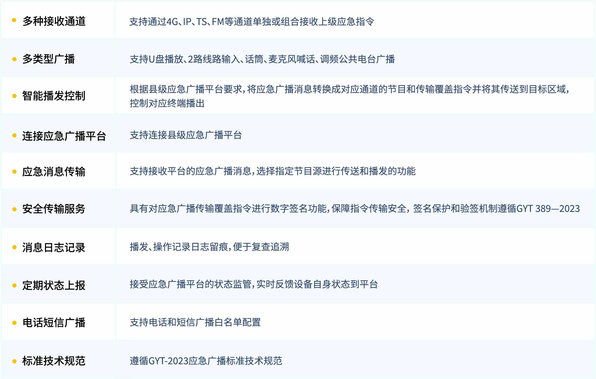 鄉村應急廣播大喇叭適配器是一款集成播發、控制于一體的智能設備,安裝部署在鄉鎮、村的廣播室。適配器可接收上級廣播信號,經過處理后實現面向終端進行廣播的功能;信號接收模式多樣,支持4G/IP/地面數字電視/有線數字電視/調頻等接收模式。適配器支持本地用戶控制,實現本地廣播的控制;本地廣播輸入方式多樣,支持線路輸入,本地 麥克風,U盤播放等。產品穩定、功能多樣,能夠完美滿足各級用戶的基本需求。